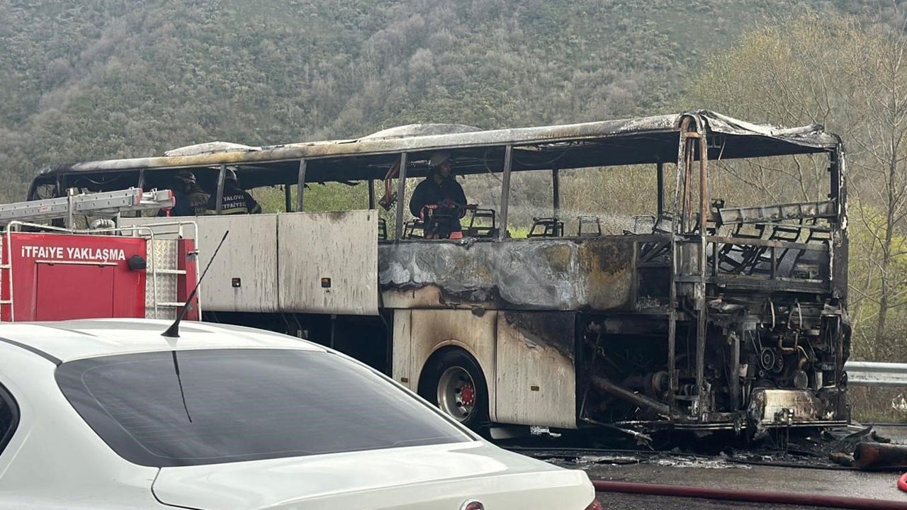 Yalova - Bursa kara yolunda seyir halindeki şehirlerarası yolcu otobüsünün arka kısmında bulunan motor bölümünde yangın çıktı. Kısa sürede alevler büyüyerek otobüsü sardı. Bir süre yanarak ilerleyen otobüsteki yanını fark eden şoför aracı yol kenarına çekerken yolcular canını zor kurtardı. Otobüs küle döndü.