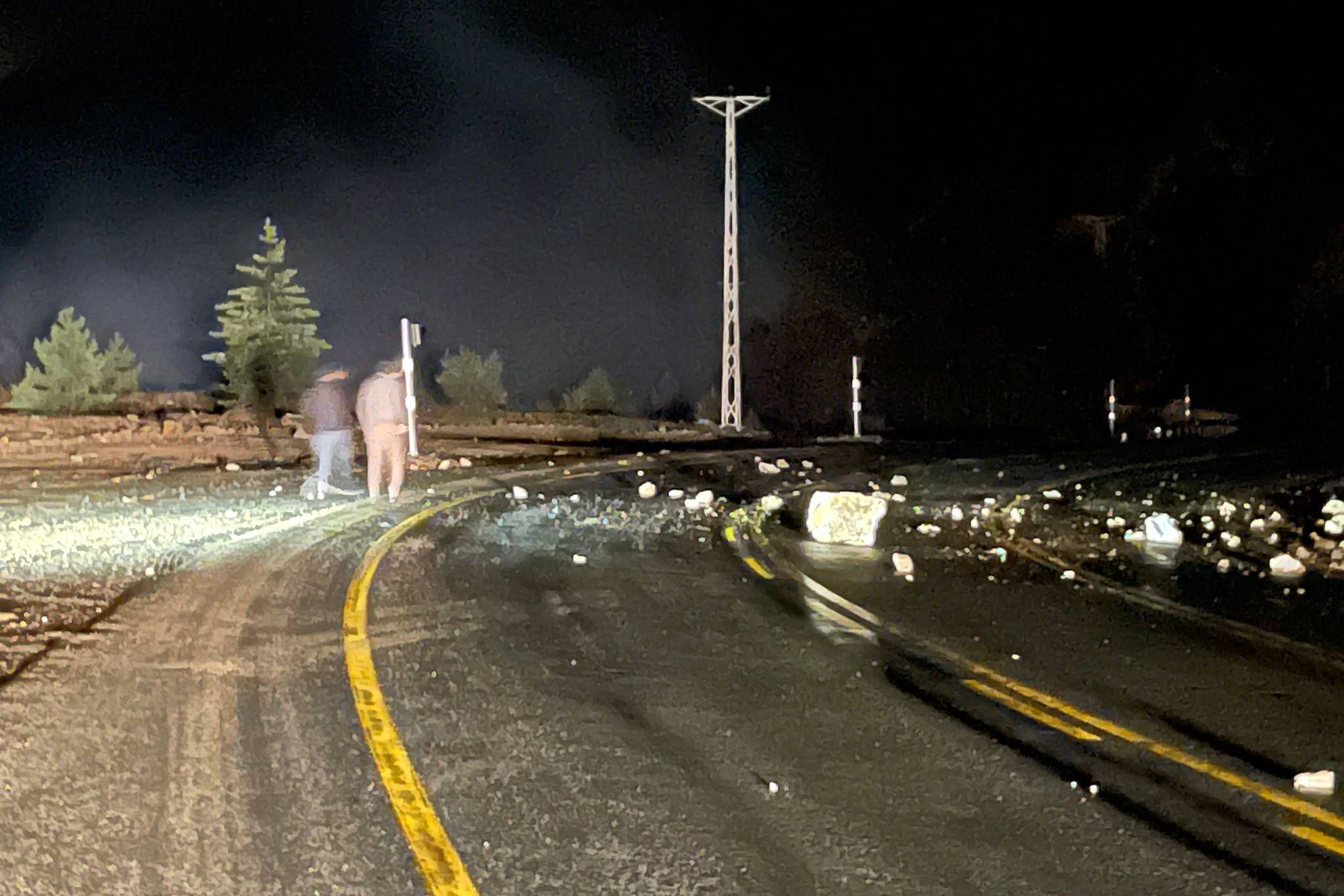 Olay anında çok korktuğunu ifade eden Karaduman, “Araca çarpan kayaların seslerini duyunca hızlıca manevra yaparak kaçarak ilerde durdum. Küçük taşları ben temizledim ama büyük taşlar için Karayolları ekiplerine haber verdim” dedi.