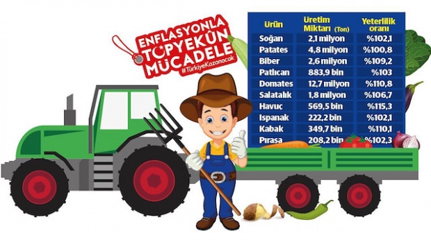 Son dönemde fahiş fiyat artışlarını bahane eden kesimlerin, yetersiz üretim iddialarının tersine temel tarım ürünlerinde üretim fazlası olduğu rakamlarla dahi görülüyor. Yıllık tarımsal hasıla, 'Türkiye tarımda kendine yeten bir ülke olmaktan çıktı' söylemlerinin gerçeği yansıtmadığını gösteriyor. TUİK rakamlarına göre, birçok temel tarım ürününde Türkiye'nin kendi kendine yettiği görülüyor. Yeterlilik miktarının yüzde 100 üzerinden hesaplandığı rakamlara göre, patates ve soğanda da fazla verildiği görülüyor.