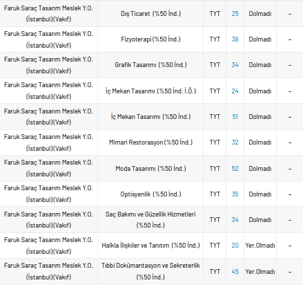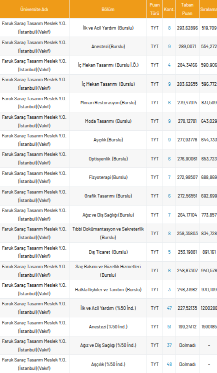 Faruk Saraç Tasarım Meslek Yüksekokulu taban puanları 2021, yüzdelik dilimleri ve kontenjan sayıları kaçtır?