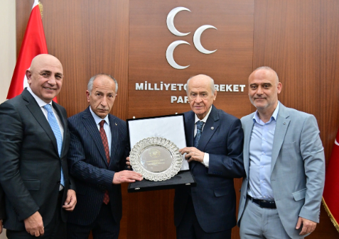 Heyet, MHP Liderine Kulüple ilgili bilgilendirmede bulunarak, MHP Liderinin onursal üyelik beratını da takdim etti.