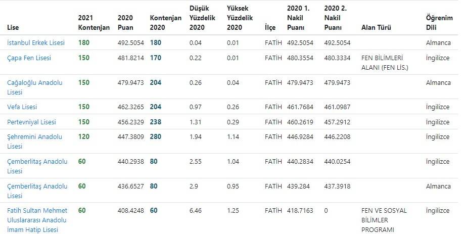 Fatih puanla öğrenci alan liseler 2021 | LGS'ye giren öğrenciler hayalini kurdukları liselere yerleşebilmek için puan, kontenjan ve yüzdelik dilimleri araştırmaya başladı. Peki, İstanbul Erkek Lisesi yüzdelik dilimi ne 2021 | Çemberlitaş Anadolu Lisesi kontenjanı