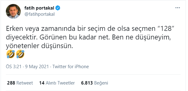 "Erken veya zamanında bir seçim de olsa seçmen '128' diyecektir. Görünen bu kadar net. Ben ne düşüneyim, yönetenler düşünsün."