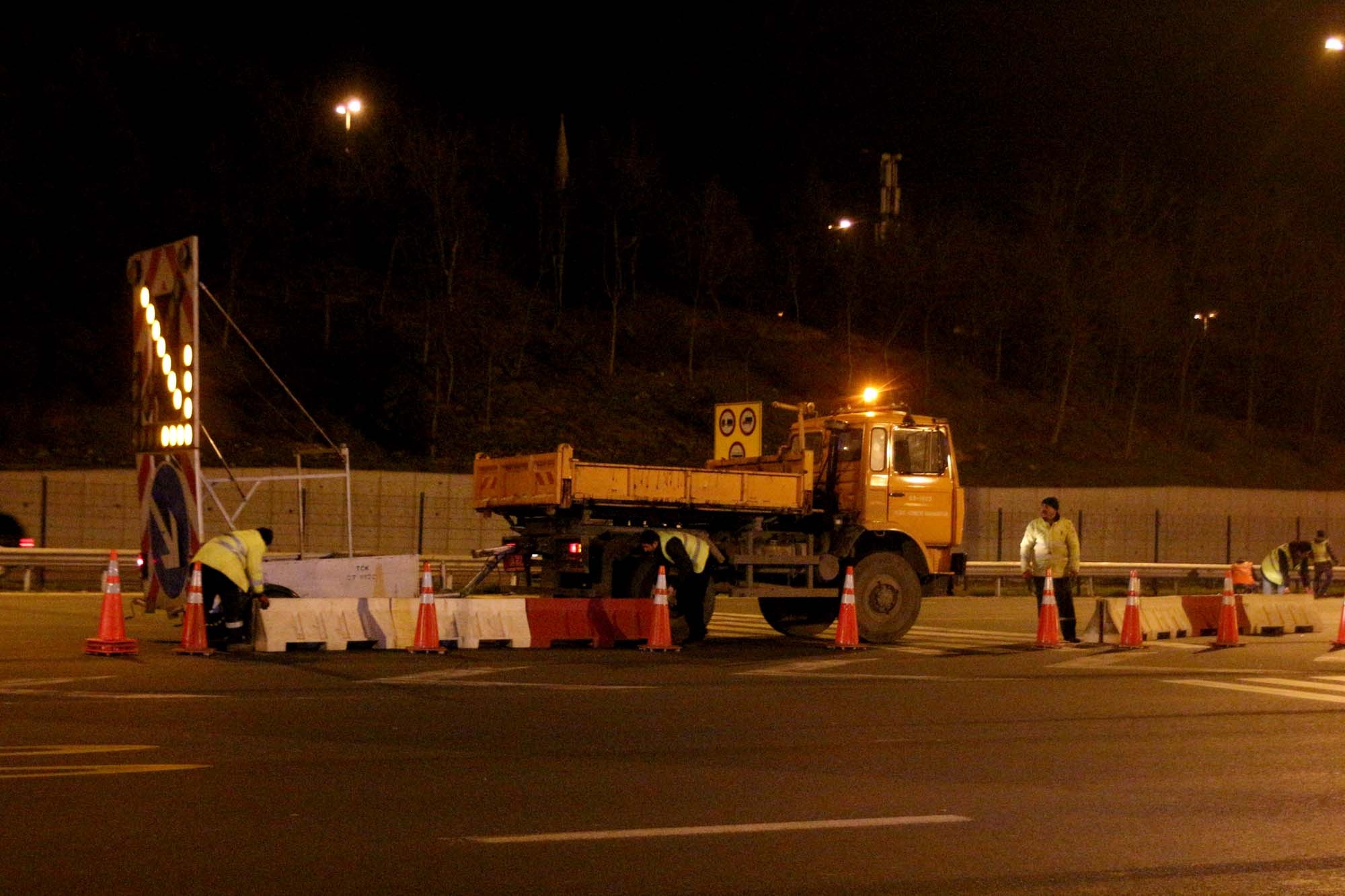 Çalışmaların yapılacağı 4 gişeye giden yol ekipler tarafından ışıklı uyarı levhaları ve dubalarla trafiğe kapatıldı. Ekipler sürücüleri yanlış yönlendirilebilecek eski uyarı levhaları sökerek kaldırdı. Sürücüler trafik uyarı levhalarıyla 6,7,8,9,10 ve 11 numaralı gişelere yönlendirildi. Bu gişelerden OGS ve HGS etiketli araçlar aynı şeridi kullanarak geçiş yapabilecek.