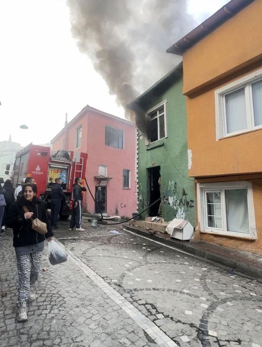 Fatih'te 8 kişilik bir ailenin yaşadığı 2 katlı bir binada çıkan yangından aile üyeleri kendilerini son bir hamleyle dışarı atarak canlarını kurtardı.