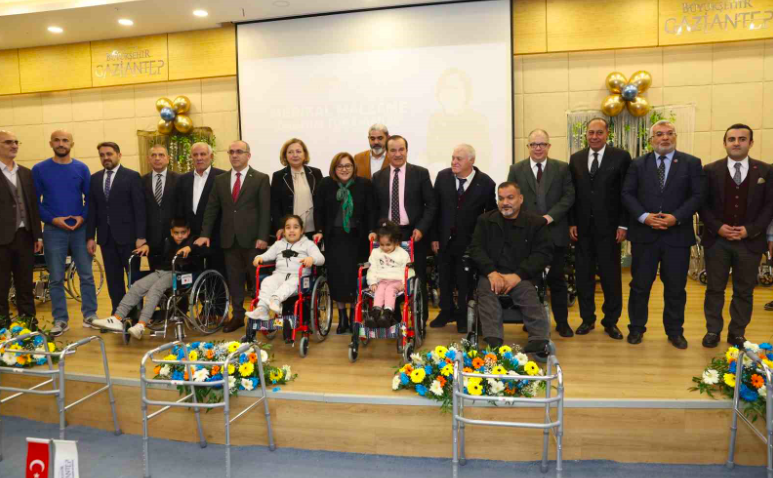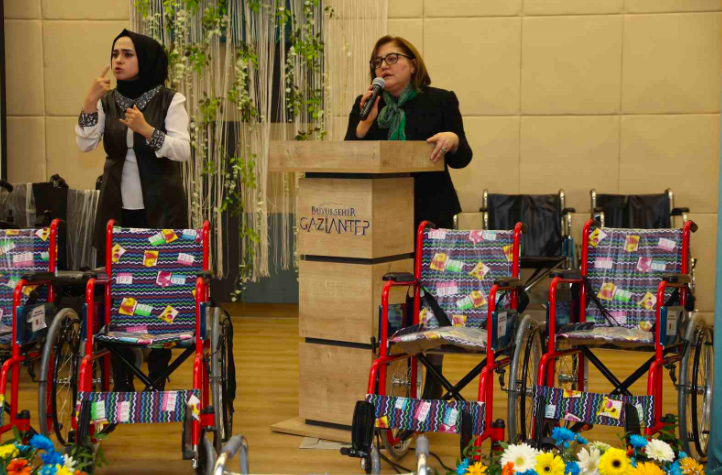 Engelli bireylerin toplumsal yaşama daha etkin katılımlarını sağlamak amacıyla Gaziantep Büyükşehir Belediyesi Sağlık ve Engelli Yaşlı Hizmetleri Daire Başkanlığı tarafından Engelsiz Yaşam Merkezi’nde yapılan dağıtım töreninde 16 akülü tekerlekli sandalye, 42 yetişkin tekerlekli sandalye, 14 çocuk tekerlekli sandalye ve 30 konuşan saat ile beyaz baston verildi.