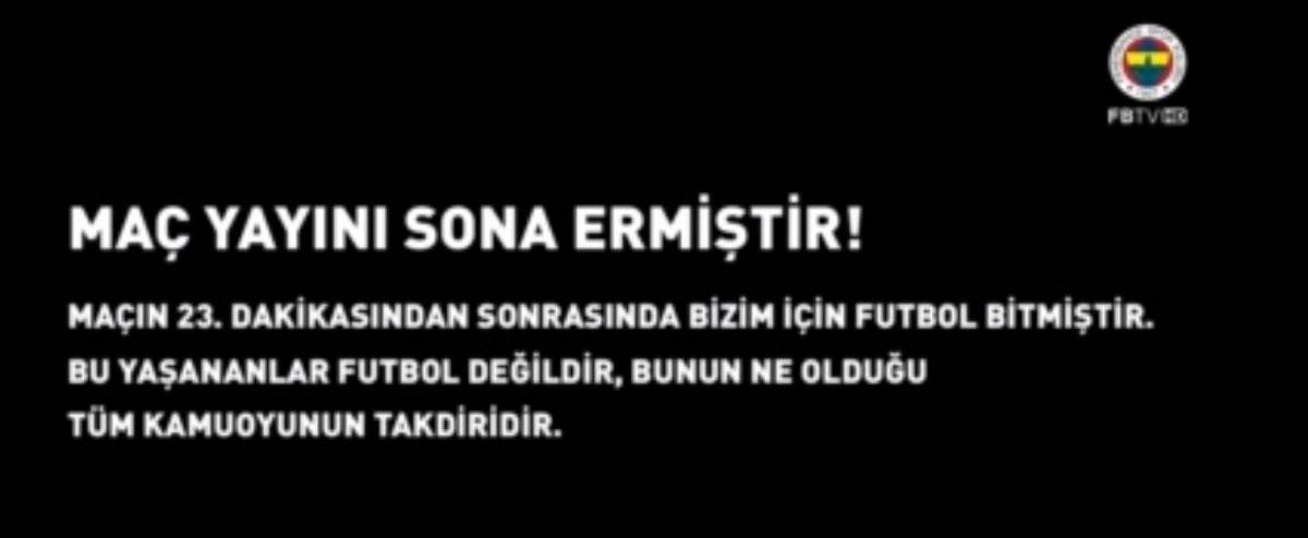 FB TV, karşılaşmanın özetini verdiği esnada kırmızı kart pozisyonunun geldiği an, karşılaşmanın yayınını keserek, "Maçın 23. dakikasından sonra bizim için yayın bitmiştir. Bu yaşananlar futbol değildir, bunun ne olduğu tüm kamuoyunun takdiridir." notunu paylaştı.