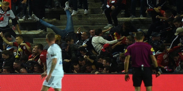 Bariyerin çökmesiyle bazı taraftarların birkaç metre yükseklikten yere düşerek, bazılarının da ezilerek yaralandığı bildirildi.