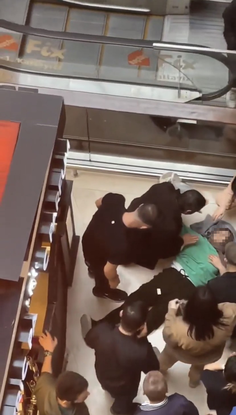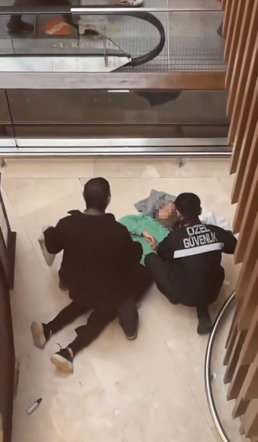 İstanbul Ümraniye'de bulunan AVM'de, dengesini kaybeden bir kadın birinci kattan zemin kata düştü.