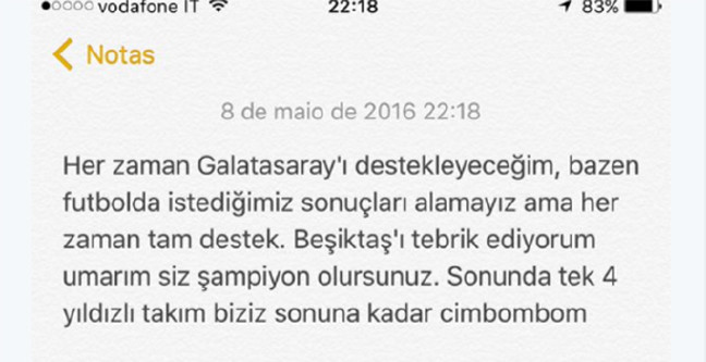 Melo, kişisel twitter hesabından yaptığı paylaşımda, "Her zaman Galatasaray'ı destekleyeceğim. Bazen futbolda istediğimiz sonuçları alamayız ama her zaman tam destek... Beşiktaş'ı tebrik ediyorum. Umarım siz şampiyon olursunuz. Sonunda tek 4 yıldızlı takım biziz. Sonuna kadar Cim Bom Bom" ifadelerini kullandı.