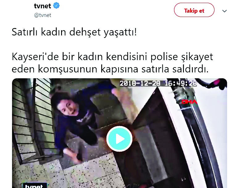 • Kayseri’de C.K. bir kadın kendisini polise şikayet eden komşusuna satırla saldırdı. (2019)