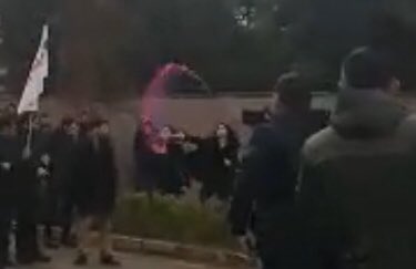 Ankara Üniversitesi'nde toplanarak feministlerin ikiyüzlülüğünü protesto eden TGB üyelerine, kadına şiddete karşıt gibi görünen PKK'nın siyasi uzantısı HDP güdümündeki feministler mor boya atarak saldırdı.