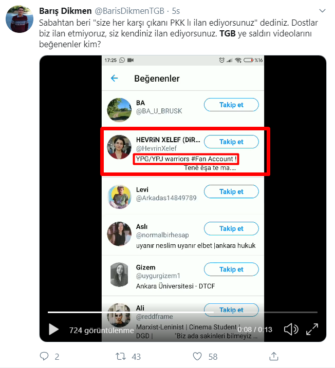 Öte yandan TGB'ye yapılan feminist saldırı videosuna beğenilerin terör örgütü PKK yandaşlarından gelmesi şaşırtmadı.