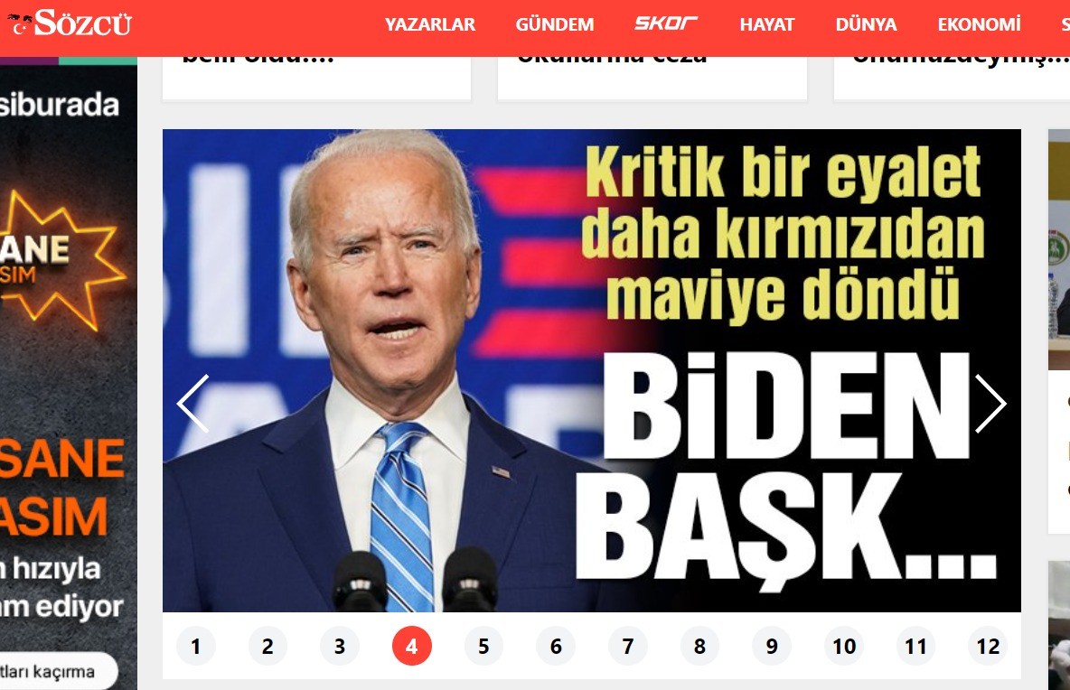 Biden’ın kazanma ihtimali güçlenince yayınlanan ikinci haberde ise “Kritik bir eyalet daha kırmızıdan maviye döndü! Biden Başk…” manşetini attı.