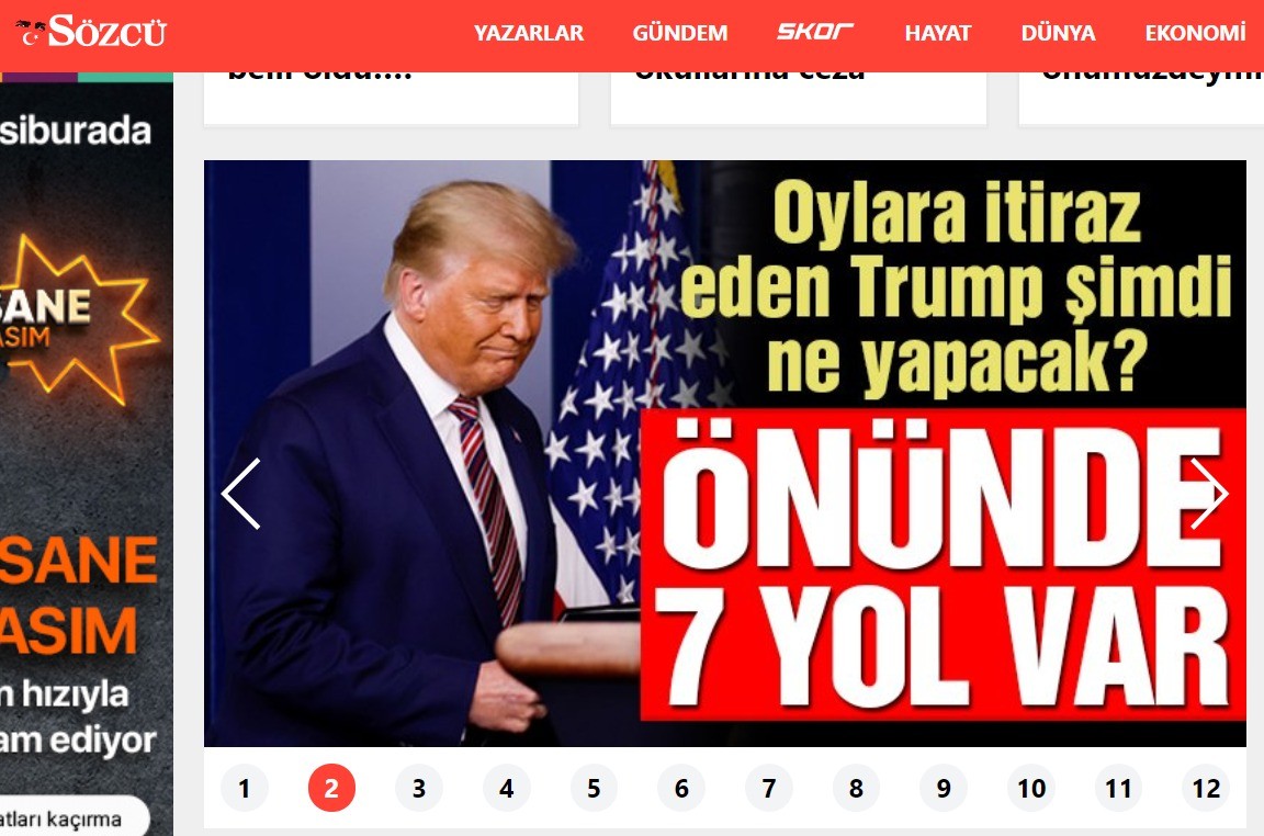 Birinci haberde “Oylara itiraz eden Trump şimdi ne yapacak?” manşeti atılırken...