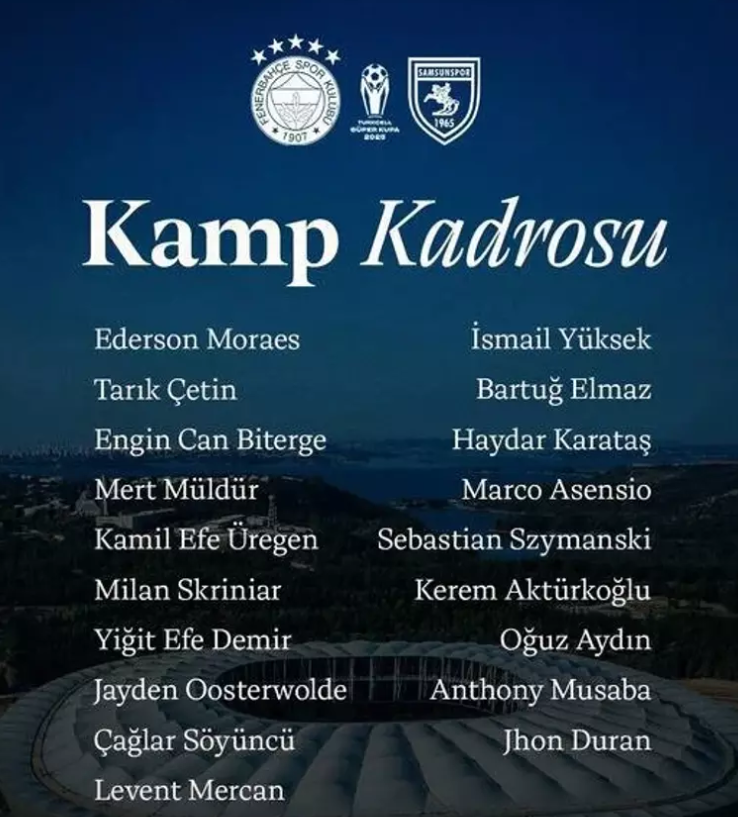 Fenerbahçe'nin 19 kişilik Samsunspor maçı kamp kadrosu şu şekilde: