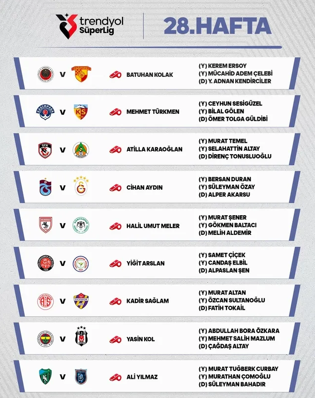 İşte Süper Lig'in 28. haftasında görev alacak hakemler: