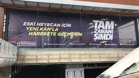 İnşaat halindeki binaya asılan ve Kadıköy istikametinden gelen tüm taraftarların gördüğü Ali Koç afişlerinde "Eski heyecan için yeni Kan'la harekete geçmenin tam zamanı şimdi" sloganı yer aldı.
