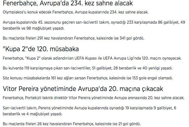 Fenerbahçe Olympiakos maçı istatistikleri