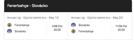 Fenerbahçe taraftarlarının Şampiyonlar Ligi ikinci ön eleme rövanş maçında Dinamo Kiev’e yenildi. UEFA Avrupa Ligi'ne veda eden Fenerbahçe, mücadelesini UEFA Avrupa Ligi'nde sürdürecek. Fenerbahç’nin Avrupa Ligi rakibi Slovacko. Peki Fenerbahçe - Slovacko UEFA Avrupa Ligi maçı ne zaman, saat kaçta, hangi kanalda?