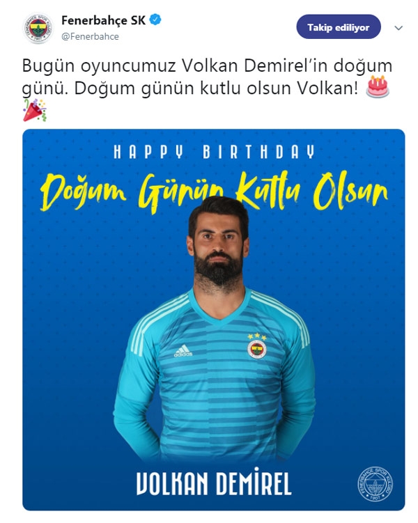 Fenerbahçe Kulübü, geçtiğimiz günlerde Dirar ve Aatif ile birlikte kadro dışı kalan tecrübeli file bekçisi Demirel'in doğum gününü kutladı.
