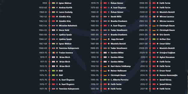 1959-2016 yılları arası Fenerbahçe Teknik Direktörleri