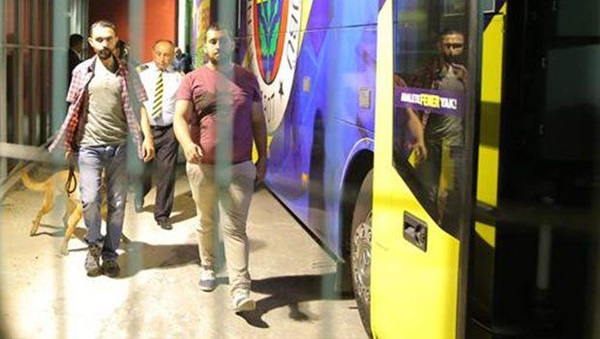 Polis ekipleri otobüsün çevresinde, içinde ve bagaj kısmında köpekle arama yaptıktan sonra sarı-lacivertli futbolcular otobüse binerek, Adana Havalimanı'na hareket etti.