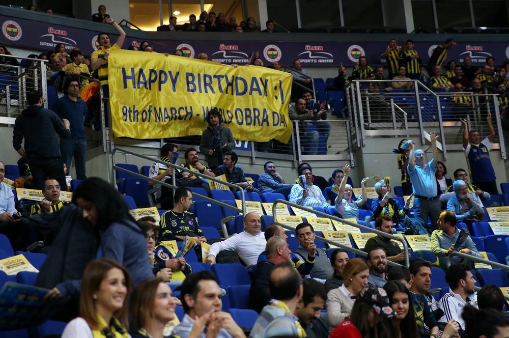 Öte yandan, maç öncesi taraftarlar, Fenerbahçe Başantrenörü Zeljko Obradovic'in 56. yaş gününü kutladı.