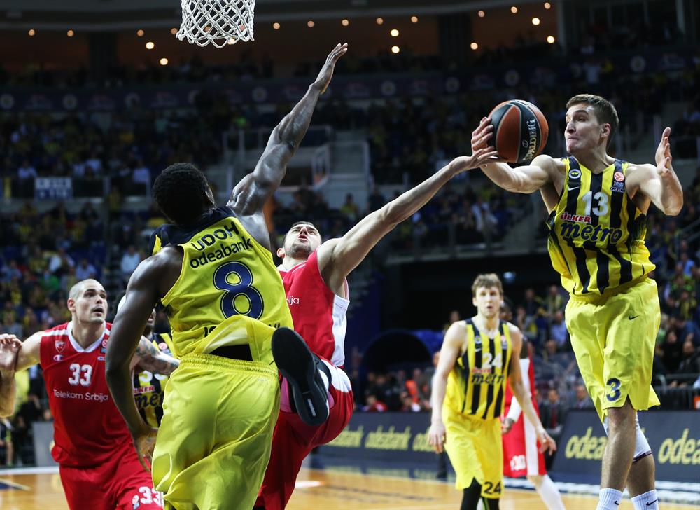 THY Avrupa Ligi Top 16 Turu E Grubu 9. hafta mücadelesinde Fenerbahçe, Sırbistan'ın Kızılyıldız Telekom takımını 72-65 yendi.