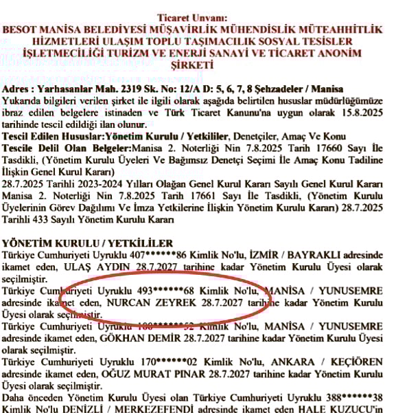 Yolsuzluk iddialarıyla ve vurgun rezaletleriyle gündemden düşmeyen CHP’li belediyelerde skandalların ardı arkası kesilmiyor. 9 Haziran’da havuzlu ultra lüks villasında elektrik akımına kapılarak hayatını kaybeden eski Manisa Belediyesi Başkanı Ferdi Zeyrek’in vefatını istismar malzemesi haline getiren CHP’liler, teselliyi yine kamu kaynaklarında buldu. Zeyrek’in kızı Nehir Zeyrek’i hem YKS sınavında hem de üniversiteye kayıt sırasında yalnız bırakmayarak “babacan lider” pozu veren Özgür Özel yönetimindeki CHP’nin, Ferdi Zeyrek’in ev hanımı eşi Nurcan Zeyrek’e ise “huzur hakkı” adı altında ballı maaş bağladığı ortaya çıktı. İçinde tüyü bitmemiş yetimin hakkı olan kamu parasını yandaşlara akıtan CHP’li Manisa Büyükşehir Belediyesi yönetiminin, Zeyrek’in vefatından yaklaşık iki ay sonra karısı Nurcan Zeyrek’i belediye iştirak şirketi BESOT’a ‘Yönetim Kurulu Üyesi’ olarak atadığı öğrenildi. Devletin resmi yayın organı konumundaki Ticaret Sicil Gazetesi’nde yer alan verilere göre, Nurcan Zeyrek, 15 Ağustos 2025 tarihinde gerçekleşen Genel Kurul’da BESOT Manisa Belediyesi Müşavirlik Mühendislik Müteahhitlik Hizmetleri Ulaşım Toplu Taşımacılık Sosyal Tesisler İşletmeciliği Turizm ve Enerji Sanayi ve Ticaret Anonim Şirketi’ne “Yönetim Kurulu Üyesi” seçildi. Gönül almak için maaş bağlanan acılı eş, 28.07.2027 tarihine kadar görevde kalmaya devam edecek. Nurcan Zeyrek’in her ay 160 bin TL maaş alacağı öne sürüldü. Kamu parasıyla yapılan ahde vefa ile ilgili ısrarla aradığımız belediye yetkilileri ise skandal atama ile ilgili haberlerinin olmadığını öne sürdü. Araştırma yapacaklarını belirten Özel Kalem Müdürlüğü yetkilileri, aradan geçen süreye rağmen herhangi bir dönüş sağlamadı. Yapılan atamalarda Ferzi Zeyrek’ten sadece bir ay önce geçirdiği kalp krizi sonucunda hayatını kaybeden Büyükşehir Belediyesi Basın Yayın ve Halkla İlişkiler Daire Başkanı Güney Temiz ile aynı soyadı taşıyan kimsenin olmaması ise CHP’li belediyelerdeki çifte standardı gözler önüne serdi.