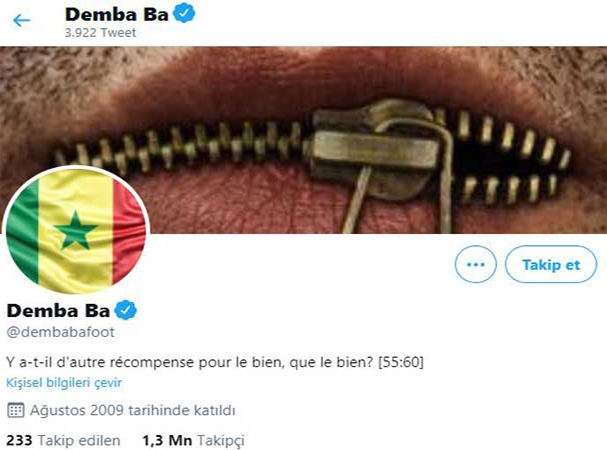 Medipol Başakşehir'de Demba Ba'nın sözleşmesi feshedildi. Ayrılık sonrası Senegalli yıldızın twitter hesabındaki fermuar fotoğrafı dikkat çekti.