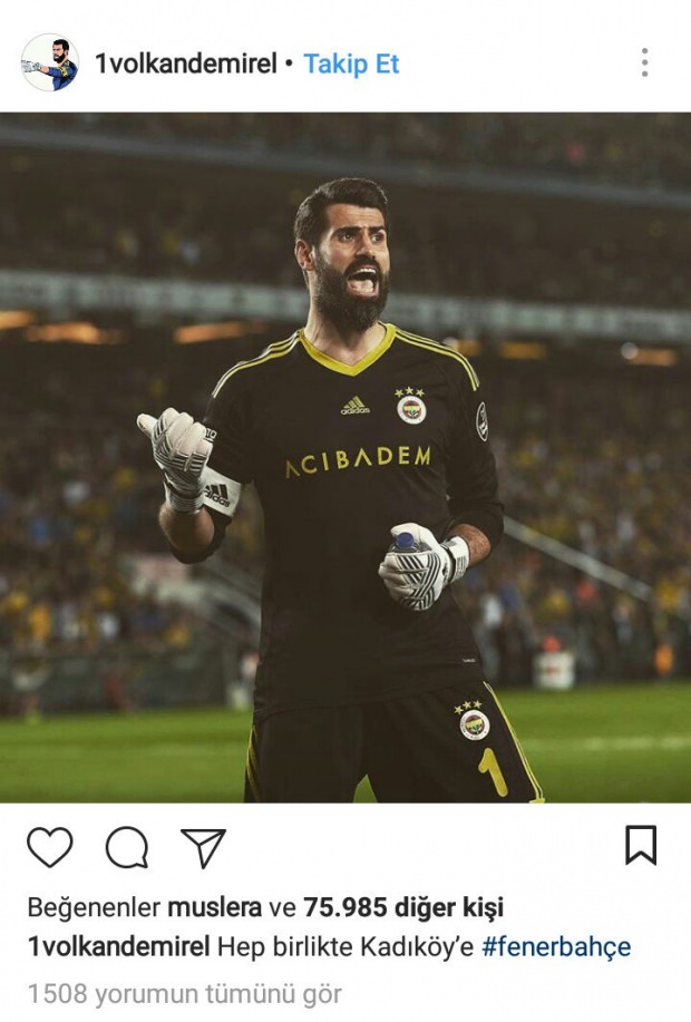 Volkan Demirel paylaştığı fotoğrafın altına, "Hep birlikte Kadıköy'e #fenerbahçe" ifadelerini kullandı ve fotoğrafı Galatasaraylı file bekçisi Fernando Muslera'nın da beğenmesi dikkat çekti.