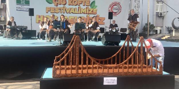 Bahçelievler’de düzenlenen Çiğ Köfte Festival’inde 15 bin vatandaşa 3 ton çiğ köfte dağıtılırken, Latif Doğan müzik ziyafeti yaşattı. Çiğ köfteden yapılan Çanakkale Köprüsü maketi ise büyük ilgi gördü.