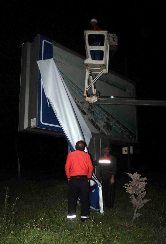 Fethiye Belediyesi’nin önderliğinde ilçedeki 38 sivil toplum kuruluşunun desteğiyle geçen 23 Şubat’ta kurulan ‘Fethiye İl Olsun Hareketi’ tarafından ilçe girişindeki tabelalara asılan ‘Fethiye İli Hoşgeldiniz’ ve ‘Güle Güle’ yazılı afişler dün gece kaldırıldı.
