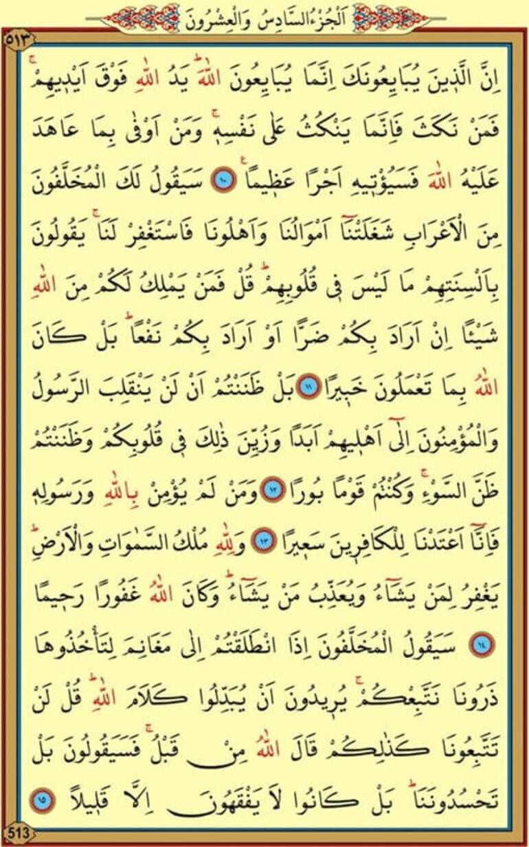 10.İnnellezıne yübayiuneke innema yübayiunellah yedüllahi fevka eydıhim fe men nekese fe innema yenküsü ala nefsih ve men evfa bi ma ahede aleyhüllahe fe se yü'tıhi ecran azıyma
