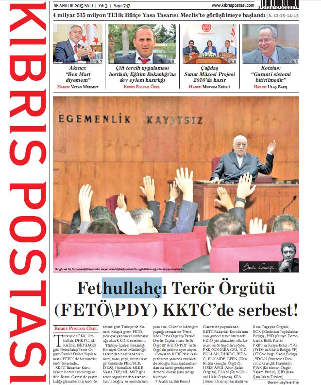 Öte yandan KKTC'nin Meclis Başkanlığı koltuğunda FETÖ lideri Fetullah Gülen'in montajlı resmiyle manşetten duyurduğu haberde KKTC'nin terör listesinde FETÖ'nün yer alması gerektiği ifade edildi.