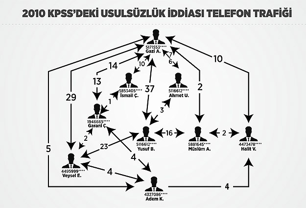 KPSS 2010'da usulsüzlük iddiasıyla başlatılan soruşturmayı yürüten savcılığın tutuklama sevk yazısından çok çarpıcı bilgiler çıktı. Yazıda "Yüksek başarı elde eden şüphelilerin aynı dershane, okul ve şirket çalışanı oldukları, aynı zamanda şüphelilerin baldızı, kuzeni, eşleri, iş yeri arkadaşları ve iletişim adresleri aynı olanların da yüksek başarı elde ettikleri" kaydedildi.