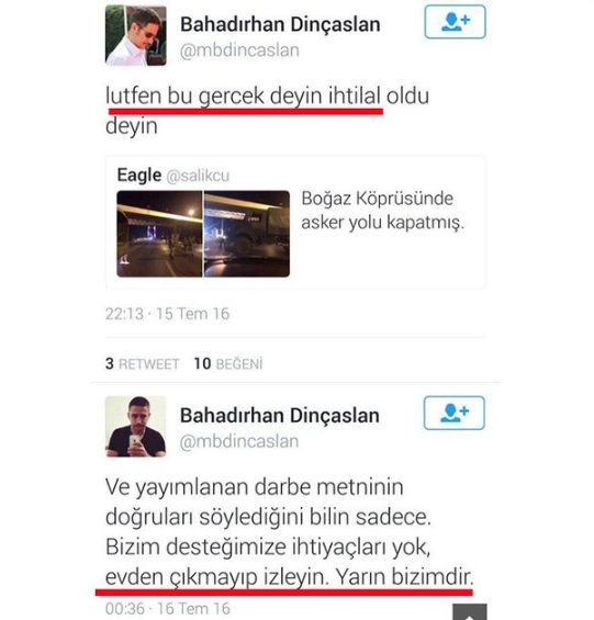 Dinçaslan’ın bu çıkışına sosyal medya üzerinden ve vatandaşlardan tokat gibi cevaplar gecikmedi. Bir yorumcunun Dinçaslan’ın darbe gecesi paylaşımlarını hatırlatarak yaptığı şu tespit, meselenin özünü özetler nitelikteydi: