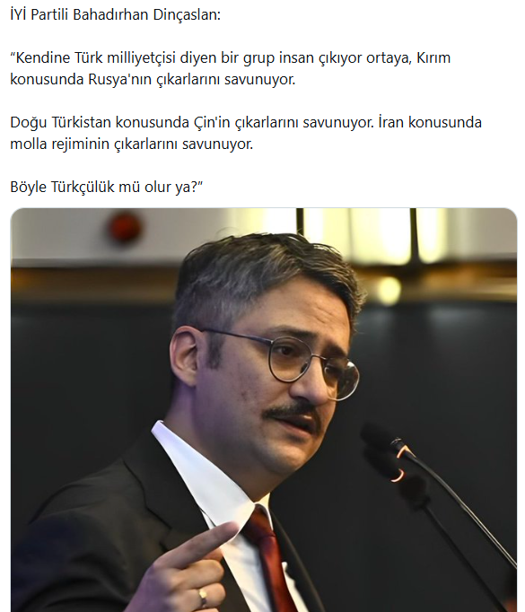 Siyasi kulislerde, LGBT savunuculuğu ve darbe destekçiliğiyle bilinen Dinçaslan’ın, İYİ Parti çatısı altında bu tür ayrıştırıcı söylemlere devam etmesi, partinin tabanındaki gerçek milliyetçileri de rahatsız ediyor. 15 Temmuz’da milletin sinesine kurşun sıkanların "doğruyu söylediğini" iddia eden bir profilin, bugün Türkiye’nin dış politika tercihlerini sorgulaması trajikomik bir tiyatro olarak değerlendiriliyor.
