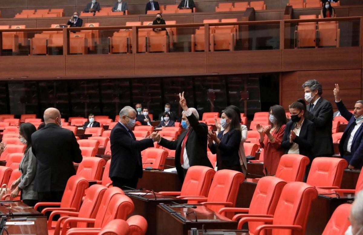 Meclis'te kararın okunmasının ardından TBMM Genel Kurul Salonu'na giren Gegerlioğlu'nu CHP'li ve HDP'li milletvekilleri karşıladı.