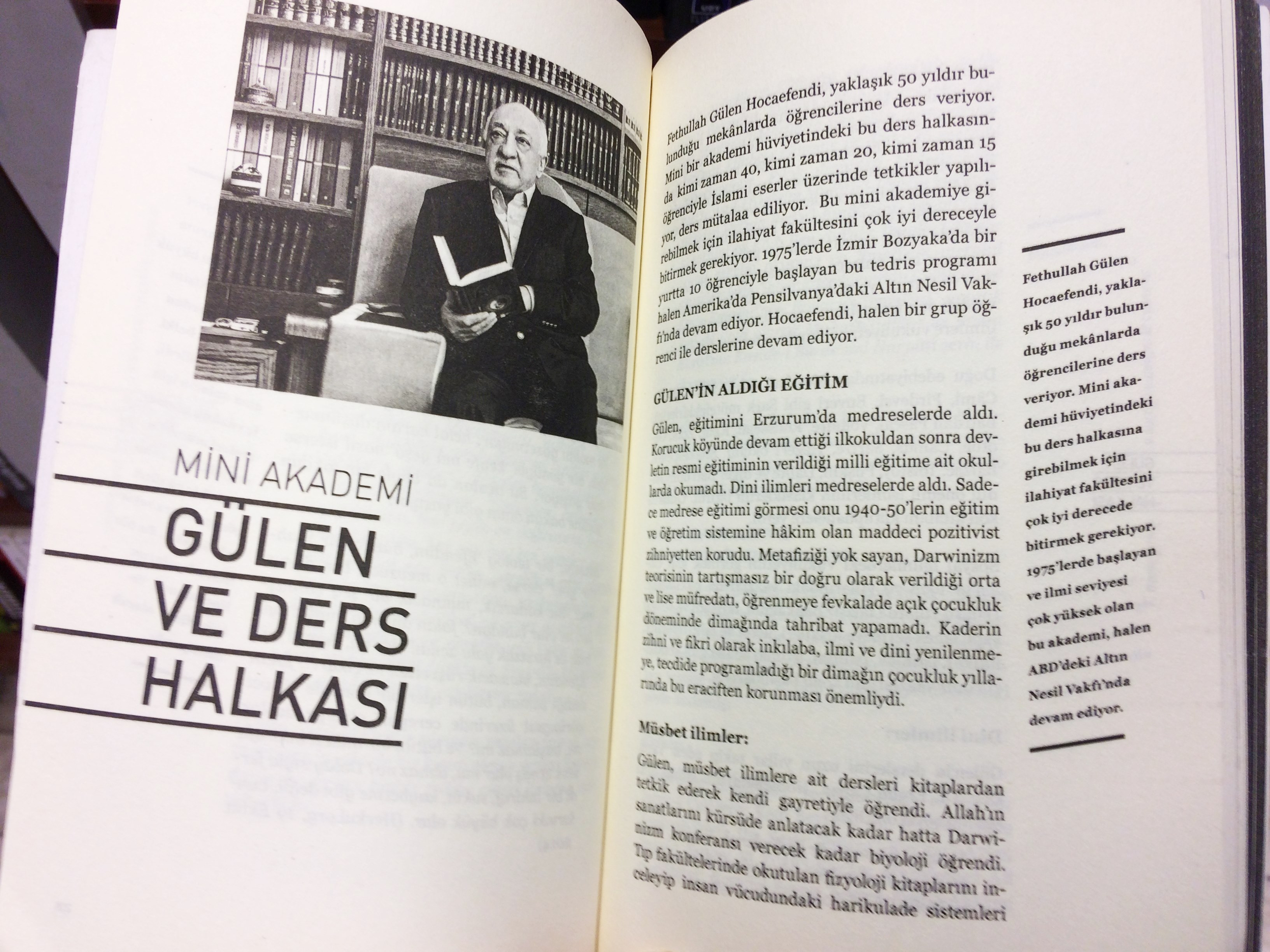 D&R’ın okurlarla buluşturduğu “Darbe Oyunu” kitabının içeriğindeki ifadeler dudak uçuklatıyor. Doğan Holding’in sattığı kitabın “Mini Akademi - Gülen Ve Ders Halkası” başlıklı bölümünde terörist elebaşı Gülen, bir eğitim neferi gibi lanse edilerek, “Fethullah Gülen Hocaefendi yaklaşık 50 yıldır bulunduğu mekanlarda öğrencilerine ders veriyor. Mini akademi hüviyetindeki bu ders halkasına girebilmek için ilahiyat fakültesini çok iyi derecede bitirmek gerekiyor. 1978’lerde başlayan ve ilmi seviyesi çok yüksek olan bu akademi, halen ABD’deki Altın Nesil Vakfı’nda devam ediyor” deniliyor.