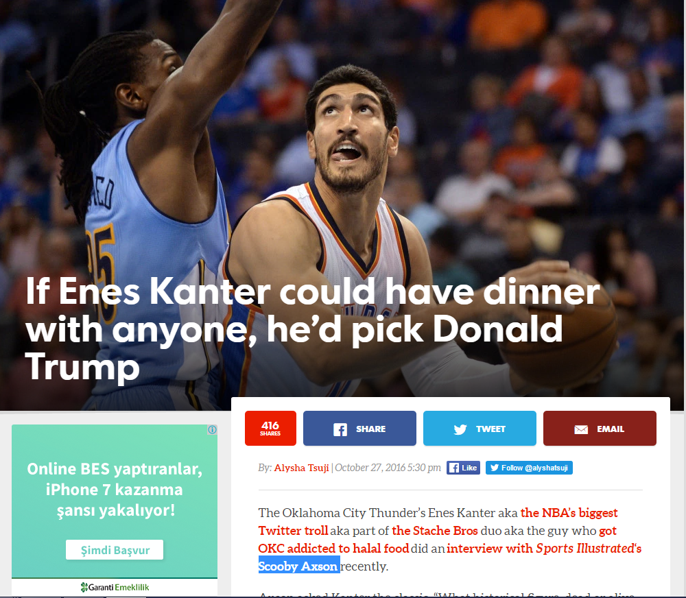 ABD seçimleri öncesinde Sports Illustrated muhabiri Scooby Axson, FETÖ militanı Enes Kanter ile soru cevap şeklinde bir röportaj yaptı.