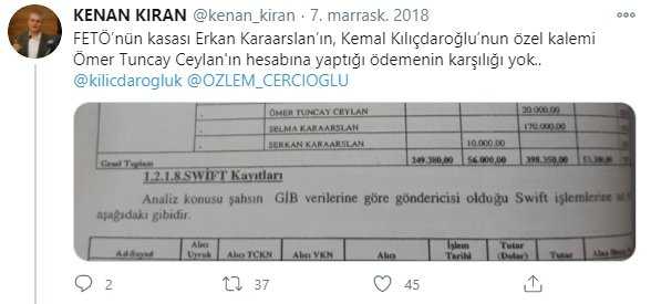 Tespitlere göre, Erkan Karaarslan, Aydın Büyükşehir Belediyesi'nin kurucu Genel Sekreteri ve hali hazırda Teftiş Kurulu Başkanı olan Önder Yeğen'e 22 bin lira, Aydın Büyükşehir Belediyesi'nin 2015-2016 yıllarında Genel Sekreterliği'ni yapan Ahmet Uğur Cebeci'ye 6 bin 500 lira gönderdiği belirlendi.