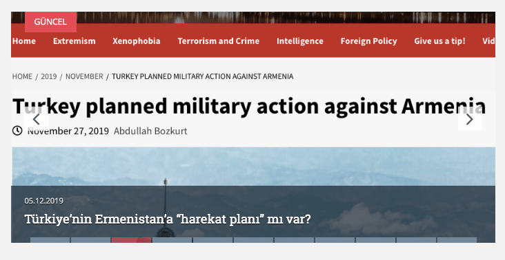 Abdullah Bozkurt'un imzasıyla FETÖ bağlantılı Nordic Monitor internet sitesinde yayınlanan bir haberde Türkiye’nin Ermenistan’a karşı askeri bir operasyon yapmayı planladığı öne sürüldü.