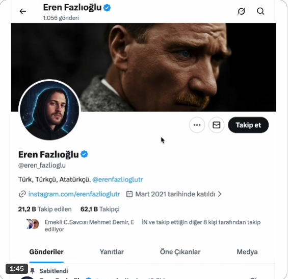 1- Şimdi size X platformunda FETÖ'nün Atatürkçü taklidi yapan binlerce sahte hesapla nasıl bir etkileşim ağı kurduğunu ve Atatürkçü söylemlerle nasıl büyük algı operasyonları yürüttüğünü göstereceğim.