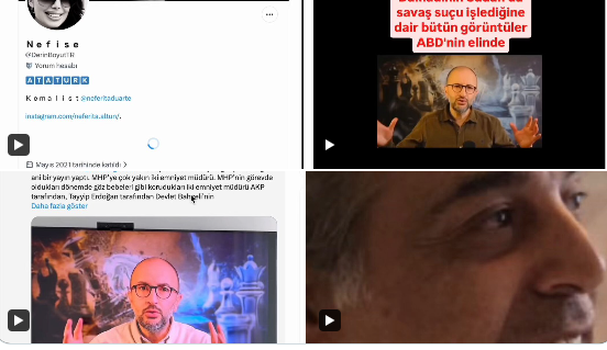 1-) @DerinBoyutTR Ana dağıtıcı gibi bir rolü üstlenmiş durumda. Genelde editlenmiş videoları yayılmasını ve algı operasyonlarını ilk bu hesap başlatıyor. Benim görebildiğim kadarıyla en çok etkileşim verilen hesapların da başında geliyor. Cevheri Güven ve diğer pek çok firari FETÖ'cüyü açıkça paylaşmasına rağmen binlerce Atatürkçü hesap tarafından etkileşime boğuluyor. Aşağıdaki bir numaralı videoda her gün firari FETÖ'cü Cevheri Güven'i paylaşan Nefise isimli hesabı ve onu etkileşime boğan binlerce sahte Atatürkçü hesabı görebilirsiniz. Mevcut silahsızlanma sürecine en aşırı tepkileri de işte bu hesaplar veriyor. Atatürkçü kitleyi bu şekilde dönüştürmeye çalışıyorlar ve komik ama çok sayıda gerçek Atatürkçü de bunların peşine takılıyor. Paylaşımdaki hesapları incelerseniz bir kısmının gerçek Atatürkçülerden oluştuğunu da görebilirsiniz.