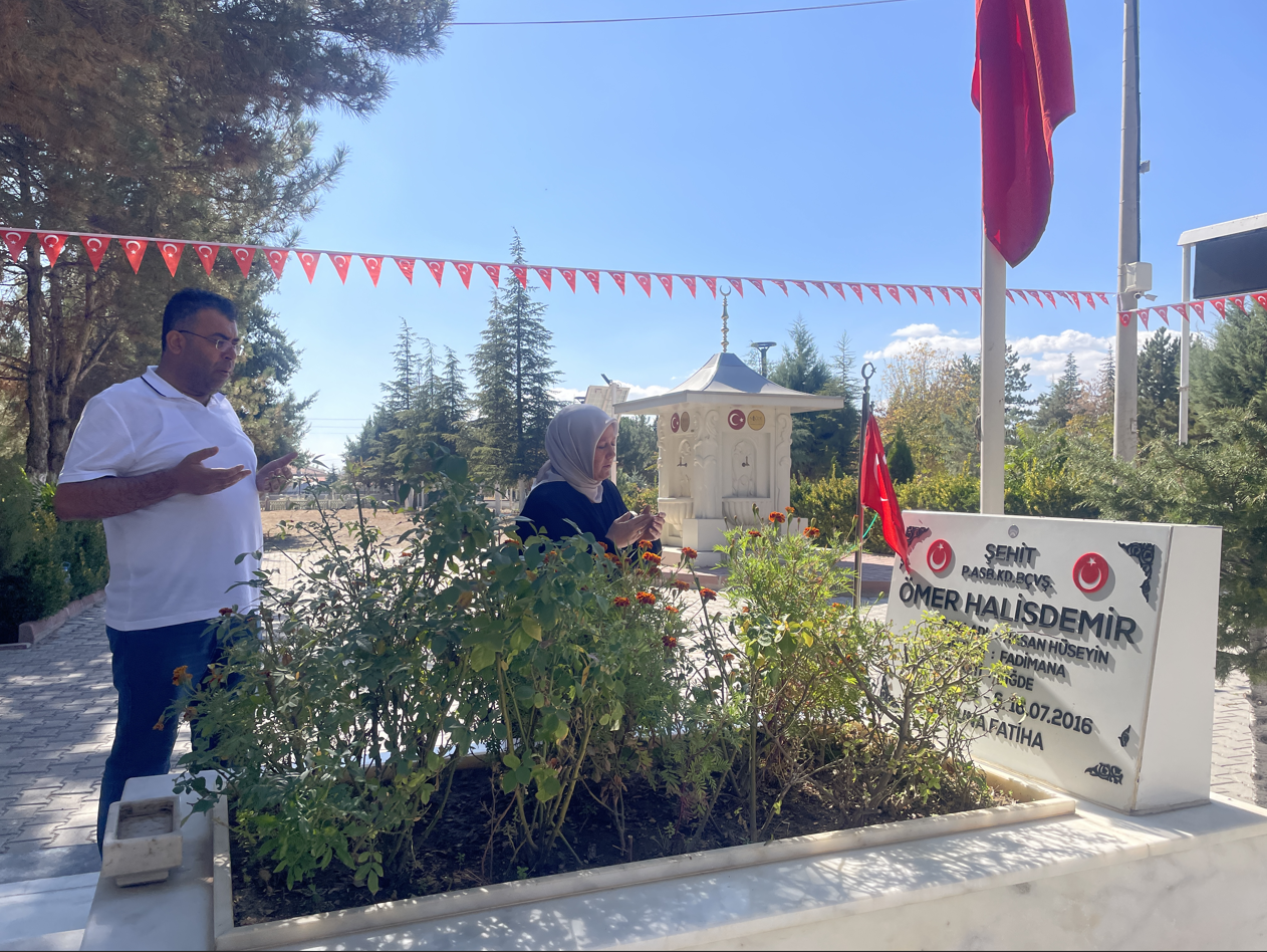 Şehidin kabrine ailesiyle gelen Serap Coşkun da Bursa'da yaşadığını, elebaşı Gülen'in ölümünün ardından şehidin kabrini ziyaret ettiklerini anlattı.