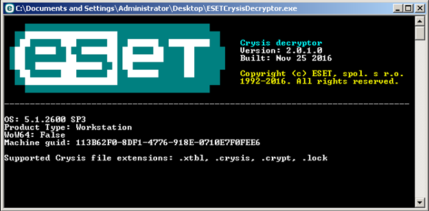 Crysis fidye yazılımı ile boğuşanlar için bugün ESET ücretsiz şifre çözücü yayınlandı.