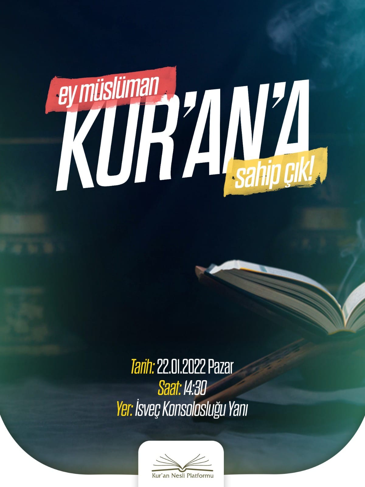 Kur'an Nesli Platformu da "Ey Müslüman Kuran'a Sahip Çık" diyerek vatandaşları yarın saat 14:30'da İsveç Konsolosluğu yanında toplanmaya davet etti.