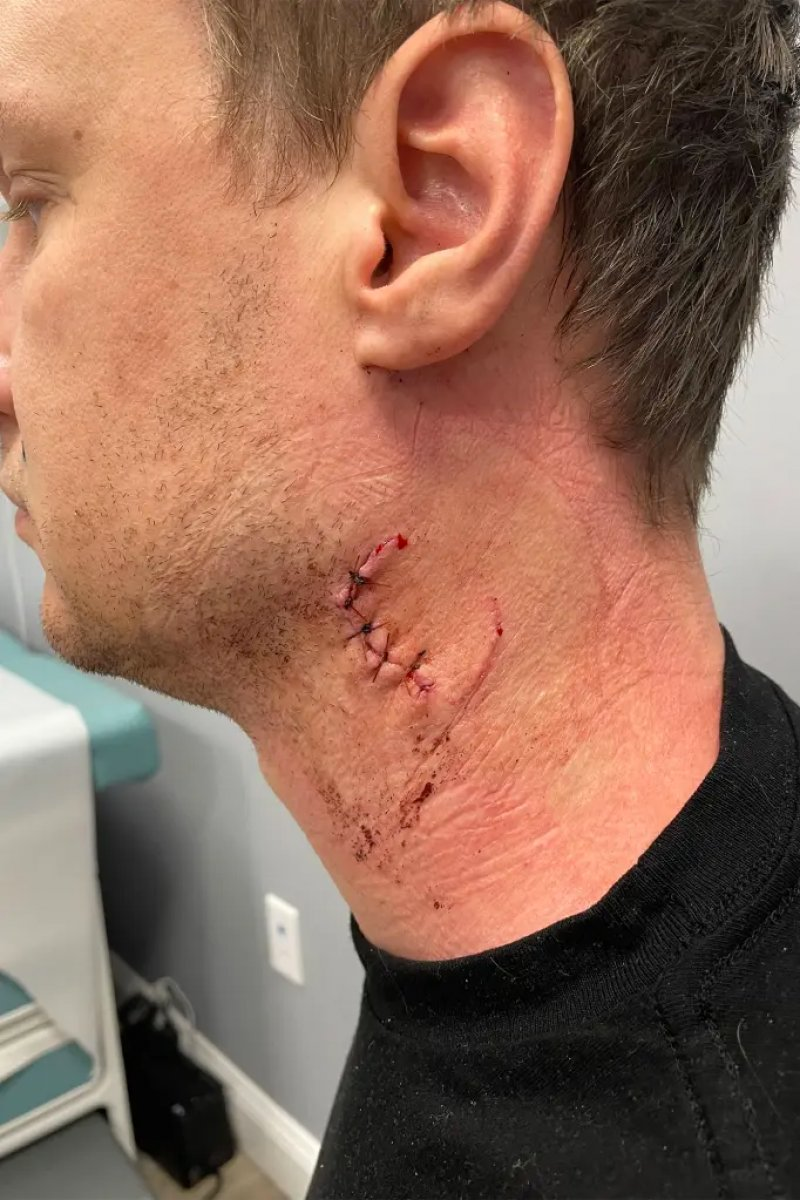 Her şey bir anda olup bitti. Hemen kalkıp onu itip kaçacağımı düşündüm ama hamle yaptı. Boynuma vurduğunu hissettim." ifadeleriyle dile getirdi.